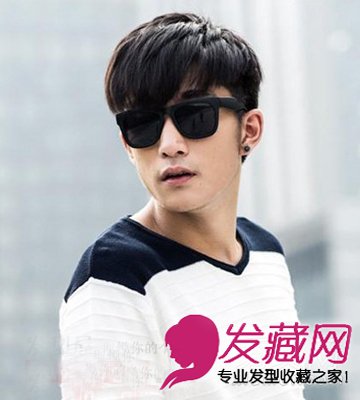 ,厚重的斜刘海遮盖住额头,修饰出精致的脸型,自然黑色短发厚重饱满,搭配一副黑色墨镜,尽显潮流风范。