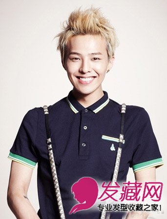 较为夸张的一款发型,个性的男生可以一试。刘海往后梳再用发胶固定住,黄色的