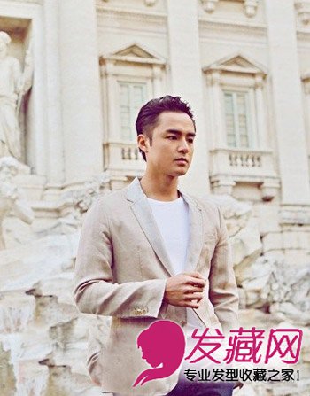 修理的简短的头发造型,碎发往后梳理,露出额头,霸气有型,灰色西装散发随性魅力。