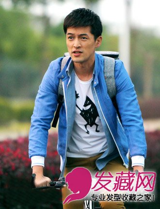 一件T恤外搭夹克衫,十分简单阳光的装扮,黑色的清新短发,没有刻意的修饰,看上去年轻有活力。