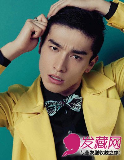 发型点评:比较短的一款男生无刘海发型,与他的立体五官和长脸型搭配,显得特别霸气。一身时尚的颜色,将更衬托出小模的魅力。