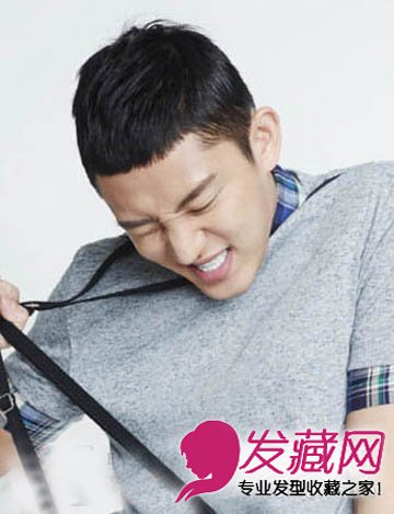 板寸头也可以很适合发际高的男生,刘海只要剪出萌萌的弧度,衬衫背带的经典搭配打造今夏时尚宅男风,休闲而舒适。