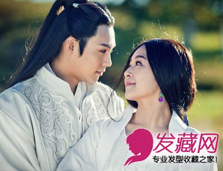 一头乌黑的秀发,加上惊艳的美貌比女人还要美腻,发髻简约束起,与张含韵同是默契白衣,尽显神情爱恋。