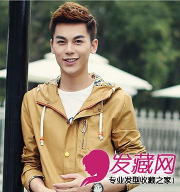 一头亮棕色的头发颜色,时尚又个性,还能提亮肤色,精简的头发,打理成卷卷的造型,大胆露出额头,够Man,够帅气,阳光般的笑脸,突显青春阳光大男孩的可爱。
