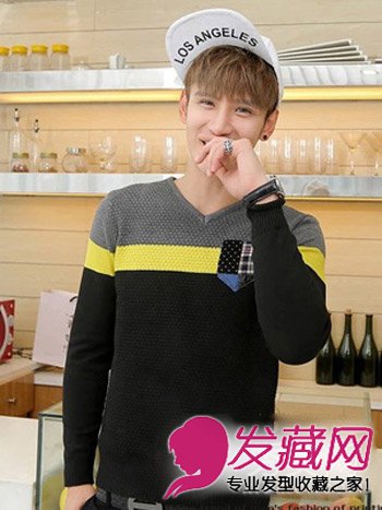 爱美,在时尚盛行的今天,不再是女生的专利,男生同样出门前会好好整理一番,这款帅气的男生齐刘海短发,一头亮棕色的短发,清爽又利落,阳光般的笑脸,搭配动感十足的帽子,凸显90后型男范。