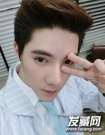 帅气的短发蓬松发型不仅清新而且有气质感,帅气的背头发型也可以打造出别致的小清新气质来,精致的五官加上搞怪的剪刀手很显可爱范。