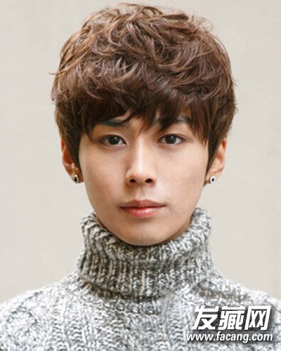 蓬松的男生纹理烫短发发型,加上厚重的刘海搭配,展现出十足的时尚潮男气质,再搭配棕色的染发颜色,更有十足的减龄效果。