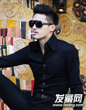 很显酷炫风的一款男生墨镜造型,利用和的是清爽的无刘海造型与颊光造型相结合的时尚设计,再与自然的黑色定位烫相搭更显型男魅力。