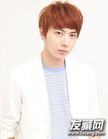流行的棕色染发,很衬男生的健康肤色,再搭配厚重的刘海修饰,更显一款俊俏的五官,也展现出十足的潮男气质。