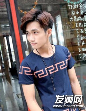一款很显花样美男气质感的男士夏季发型,偏分的造型设计再配合时尚的棕色染发颜色可是当下很多男明星们的最爱哦,配合精致的五官更添一丝阳光帅气暧男范儿。