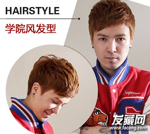 整个发型的凌乱感是利用头发弯曲状态打造,显得非常的自然,仿佛是自然卷曲,金色的发色显皮肤白皙,眉目之前带有一种酷酷的英俊的气息。
