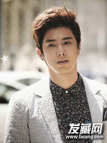 这是一款很显绅士范的发型,将头发打造成无刘海的蓬松的短发造型,搭配一身条纹的外套,刚毅的脸庞,熟男魅力十足。
