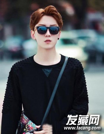 这款清爽的男生露额造型设计一直以来可是现在的潮流明星们的最爱哦,简单的偏分造型与时尚的棕黄色染发相搭,独特的