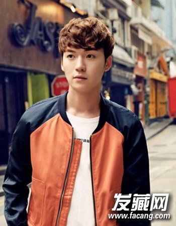 以时尚的棕黄色染发颜色为主来增添潮流感,而搭配这种潮流感的花轮头形式的烫发设计更添十足的阳光花样美男的帅气感。