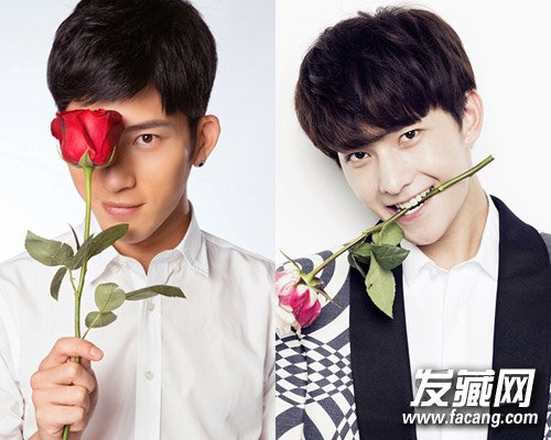 玫瑰花可不是井宝的专利哦,杨洋的长刘海遮住眉毛,再带点韩式空气范,整体造型就不会那么青春学生的感觉,反而潮味十足。