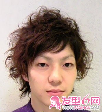 阳光的艺术男生发型,蓬松的短卷发,毛糙的自然效果,发型更时尚帅气,覆盖式的斜分长刘海,围在脸颊,发挥出很好的小脸作用。深色调的天然棕色,提亮肤色,增添元气,又显健康与时尚。