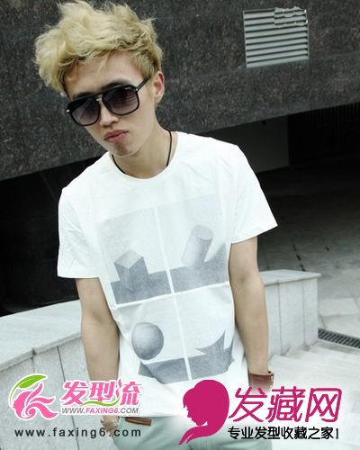 着重打造刘海处的夸张卷发,是这款男士烫发的亮点,长长的斜刘海和顶部的头发一起打造烫发效果,大波浪卷的弧度加上白金色的染发色,非常有质感,另类而张扬。