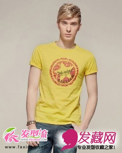 烫发发型的亮点,鲜黄色的自然发色,散发着高调的光泽,映衬出欧美男士白皙的肤色,给人特别青春的遐想。