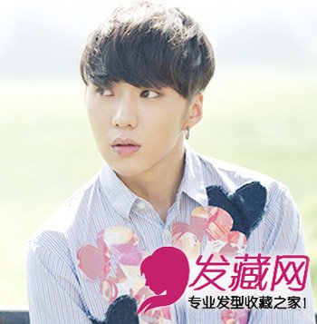 变得清新更洗净,韩式花美男的微烫发设计,长长的刘海搭在前面,可爱又阳光。