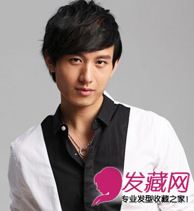 深黑色充满男生的干净自然气息,斜刘海短发修饰长脸型,经过简单定位烫设计,略显蓬松帅气,穿搭衬衫尽显阳光男魅力。