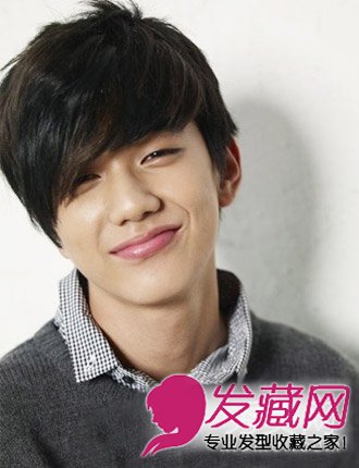 纯真的大男孩笑容足以让你融化,斜庞克发型,大片的刘海遮住额头为小眼美男增添了继续干净随性的气息。