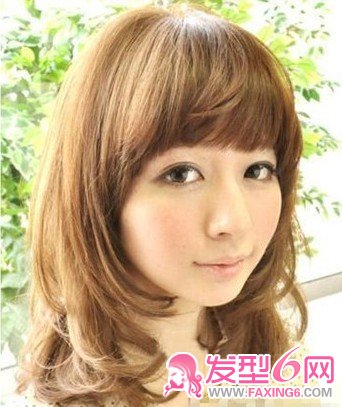 眉毛以下的稍厚重刘海和两侧修饰脸型的发丝恰好包裹住整个脸庞,突出女孩漂亮的大眼睛。只在发尾做了烫卷,显得更加自然、甜美。