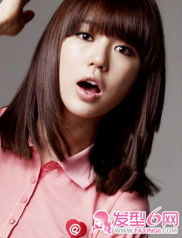 韩国女星尹恩惠的这款中长直发深受学生和年轻OL们喜爱,在传统齐刘海学生头的基础上加以改良,头发长度增加至肩部以下,整齐发尾增加坠感,搭配乖乖女单层齐刘海,青春无敌!清新简洁的发型搭配任何暖色调染发都能时尚感升级哦!