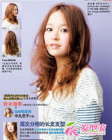 层次分明的长发发型,发底厚重修剪,从上开始加入充足的层次动感。脸部周围从下巴线~发尾加入意识到发束感的粗剪。颜色选择低亮度和高亮度交错,从而实现立体感。