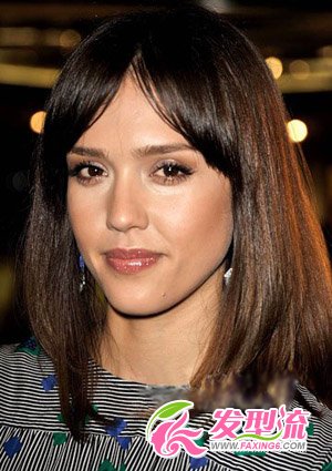 十万伏特的电眼,秒杀在场所有的人!齐肩部的中长梨花头在Jessica Alba的演绎下变得更加的闪耀动人,从整体看发丝呈现出一种自然的垂坠感,很喜欢这样的发型,颜色可以选用浅棕色也可以选用黑色!