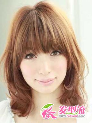 非常适合长脸女生的一款动感发型!覆盖式的刘海以及头顶部分塑造出了蓬松的质感,让女生脸部线条开始丰盈起来,脸颊两侧同样蓬松打造出瓜子脸的效果,漂亮的染发颜色让你当长脸无处可躲!