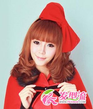 过新年的时候,这整个造型加服饰的搭配,最适合不过了,靓爆镜了呀!大热的梨花头发型,染上棕红色的发色,非常靓丽时尚。略过眉的齐刘海,有效彰显出大眼小脸的效果。夸张甜美的的大蝴蝶结发饰,想不吸引眼球都难。再加上红色斗篷装,充满了新年喜气洋洋的感觉。
