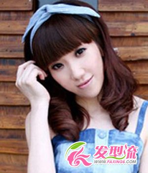 。搭配可爱的平刘海,把脸型衬托得更加小巧精致。再加上天蓝色的时尚发带点缀,起到画龙点睛的效果,为整个发型加分。