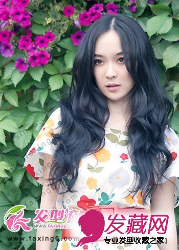 中分的长流海发型更能彰显出女性的性感气质,从颧骨开始制造井然有序的大波浪卷发,大波浪的弧度,轻松摇曳着女性的性感味道,黑色的发色让整个发型多了几分成熟,性感的眼神瞬间撩起很多男人的心。