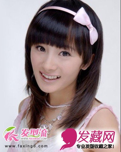 ,造型简单自然,更显青春洋溢的气息。搭配精美可爱的的粉色发箍,瞬间体现了乖巧甜美的淑女气质,清纯气息十足。