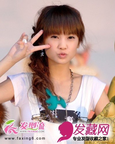 挑染金棕色的发色时尚亮丽,更散发一股淑女的甜美风气,侧边的披发多了一份优雅气质,再加上直直的齐刘海,更好的体现了丞琳的清纯可爱,瞬间吸引我们的眼球。