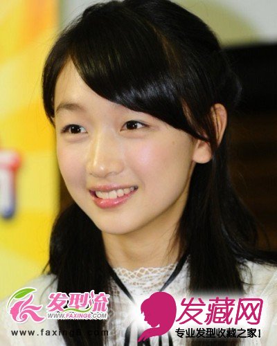 发型可以遮盖住过宽的脸颊,自然披落的中长发发型休闲美丽,在头后部,轻轻扎上一小辨子,巧妙的呈现出视觉的立体感,很好的诠释出清爽风的少女气息。