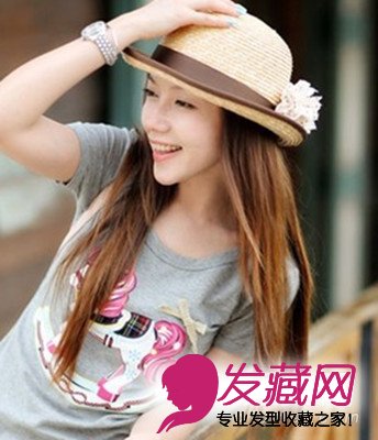 ,不需要过多烫发效果的长发发型显得比较青春活泼,顺直的长直发只要修剪出层次感的造型,就变得动感有活力,轻松变成干练女,戴上夏日火热的草帽,长直发发型清爽宜人。