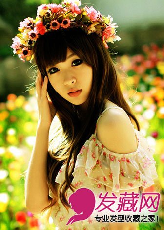 浪漫清新的森林女孩,浅色调的披肩长发,配合齐刘海和五彩花环,即UP可爱俏皮,又能增添女孩的小清新气质。