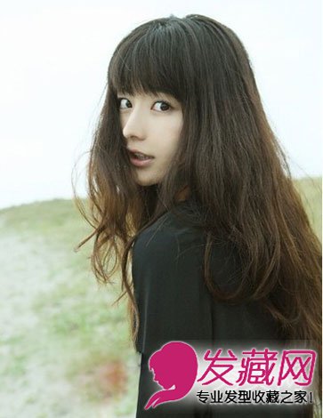 清纯无辜的小女生,齐刘海的卷长发,遮住脸颊的两边秀发,帮美眉们瘦脸小颜,淡淡颜色带来十分纯美的女生形象,苹果脸、圆脸都适合这款齐刘海长发。