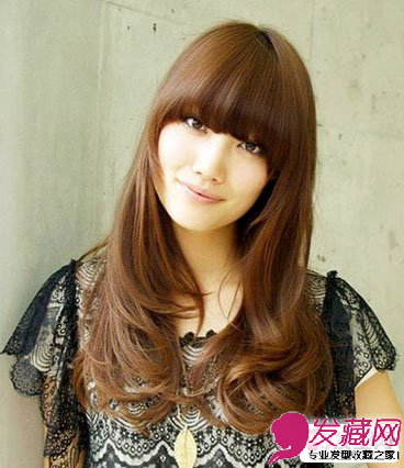 的造型是修颜瘦脸的神器,厚重的齐刘海完美的拉长了脸部线条,两侧的头发完美的将脸型包裹住,非常适合脸大的女生哦!瀑布式的大卷发非常有女人味,散发出时尚柔美的味道。