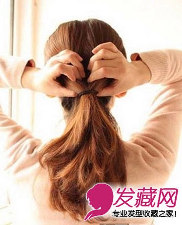 步骤三:在刚刚扎好的马尾上方,用手向两侧拨开,并挖取一个小洞。