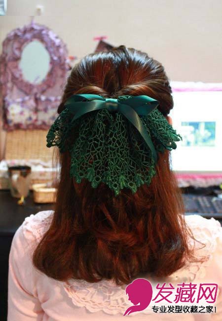 荧光绿的花饰更添典雅的感觉,去掉发饰,秀发继续