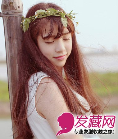 最是显肤白水嫩气质佳,随性的披肩长发搭配透气感刘海最适合春季MM们打理,搭配花环在头上,演绎气质感小清新。