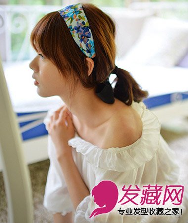 的发丝显肤白,简单的低马尾辫清新好打理,搭配发带,甜美的春季