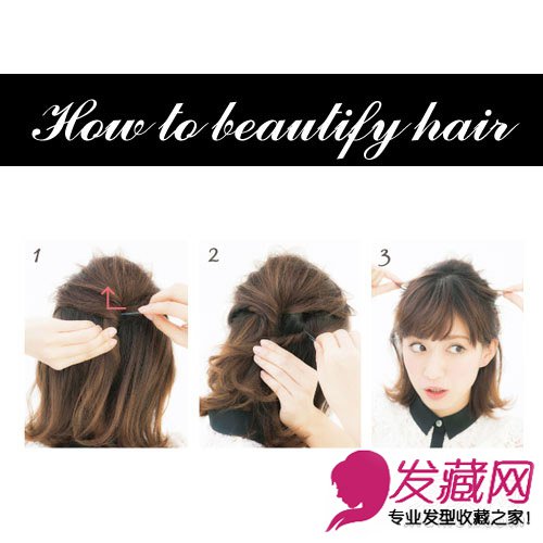 3.用你的指尖稍微拉扯一下上部的头发,使之有休闲的感觉。