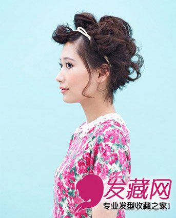 这样的发型打理起来也很方便,几根发夹、一只发箍即可。