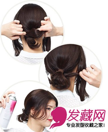step2:分别取出左右的发束,缠绕脑后的发包再用发夹固定起来。