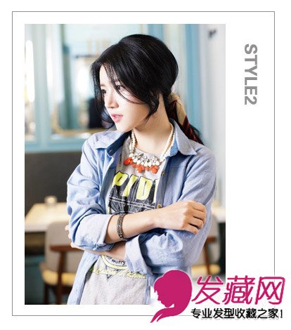 蓬松的马尾饱满随意,慵懒范儿十足。发带点缀更显甜美。