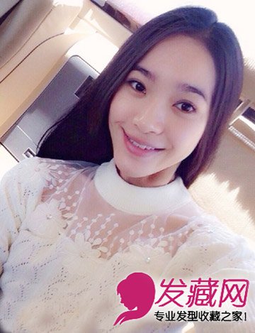 从照片中可以看出白雪有着清甜的笑容,大眼睛皮肤白皙,中分发型秀出可人的小V脸。