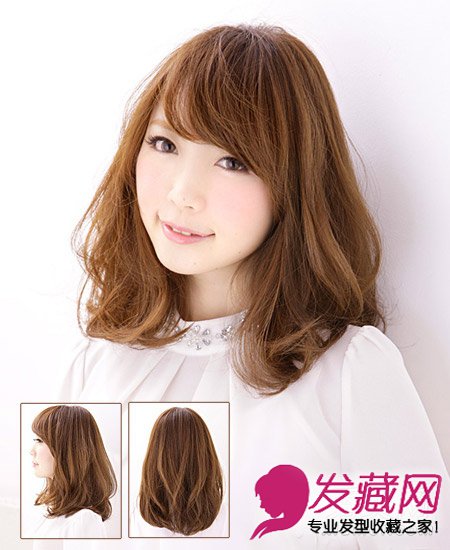 板栗色头发让皮肤变得粉嫩,中长烫发蓬松转移对脸部的注意力,有助修颜。